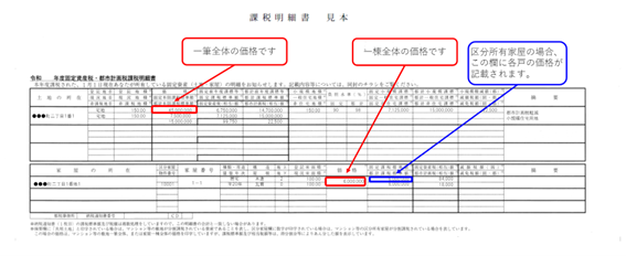 - 固定資産納税通知書の下段にある家屋欄の「価格」を確認
