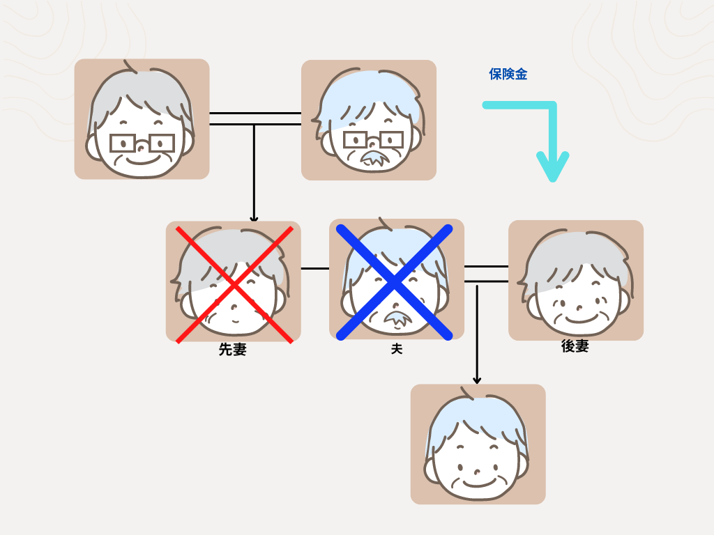 夫は先妻を受取人とする生命保険に加入していましたが、先妻は結婚してすぐ子供を授かることなく他界した。