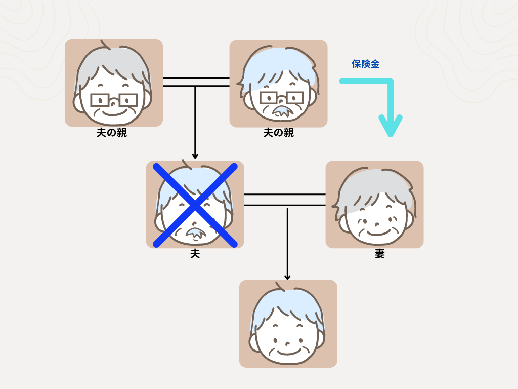 夫が独身時代に加入した生命保険について、加入当時は夫の親を受取人とする契約を締結した。その後生命保険の契約者である夫は結婚し、子供も出来たが保険金の受取人を変更する手続きを失念していた。夫の死後、保険金が夫の親に振り込まれてしまったので、その保険金を夫の親から妻へ振り込んでもらった。