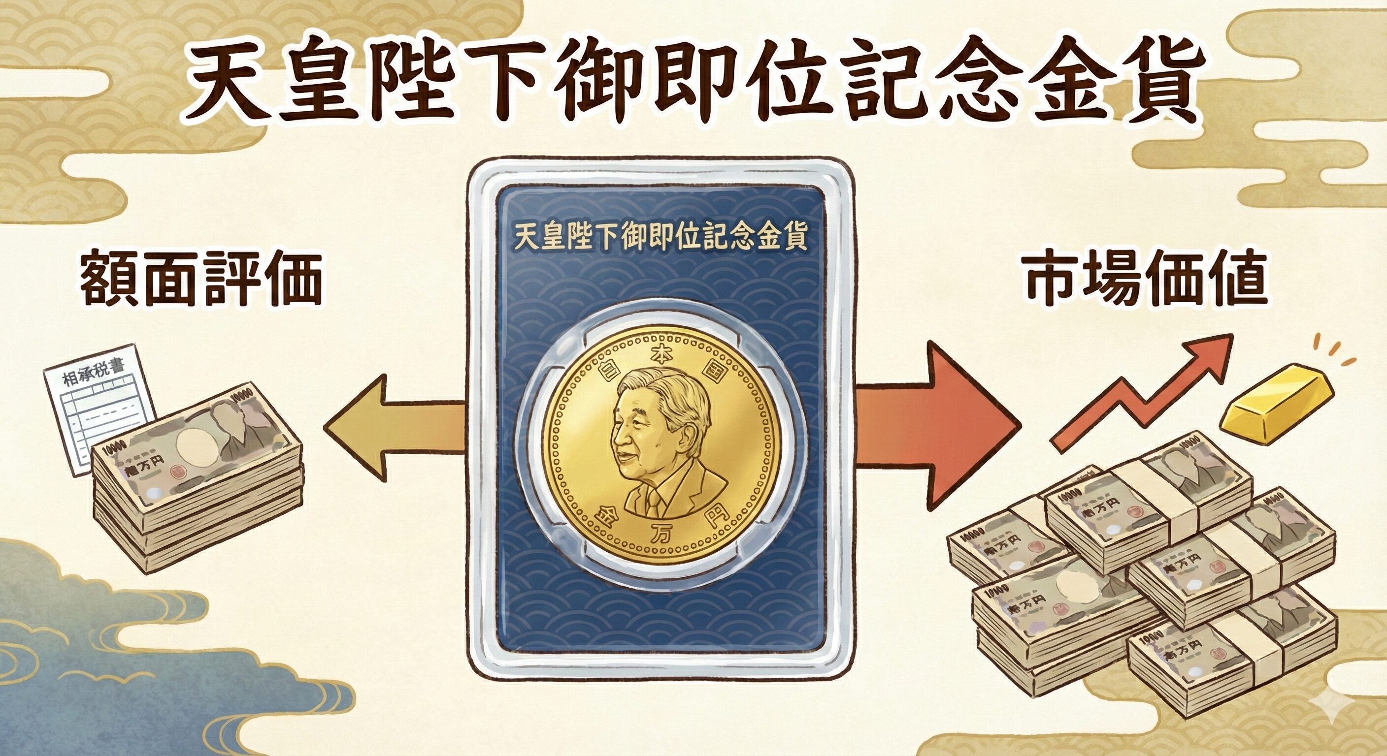 相続財産の評価において、天皇陛下御即位記念金貨は原則として額面金額(10万円)で評価します。