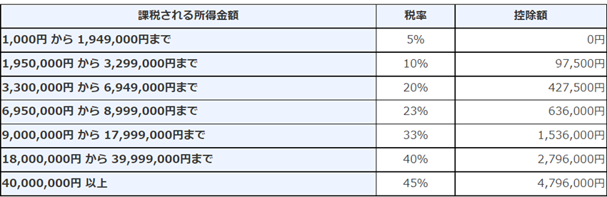 国税庁から公表されている所得税速算表は以下のとおりです。